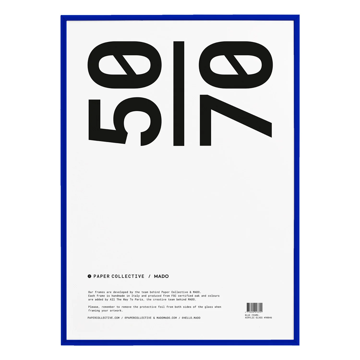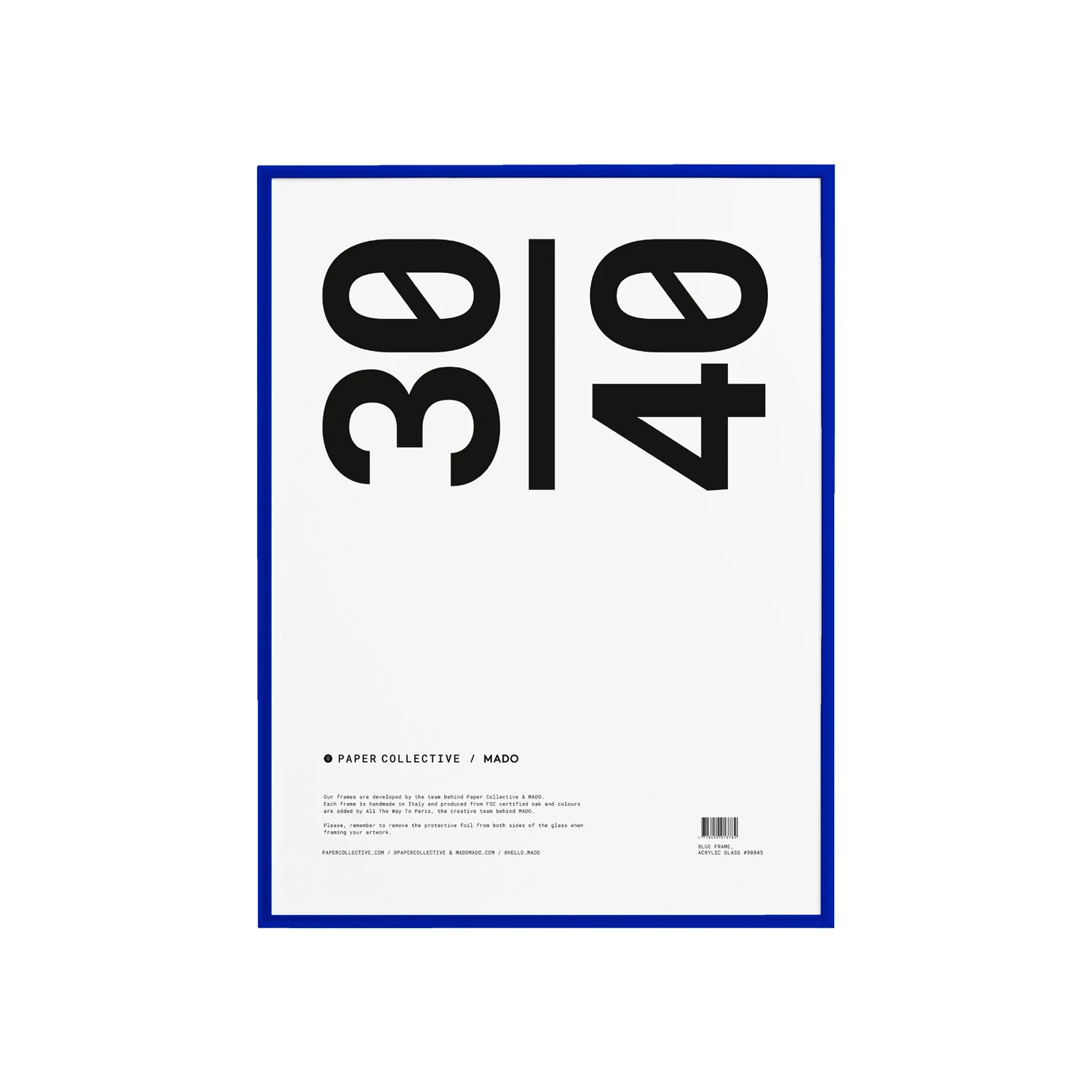 The deep blue finish β applied as a matte powder coat β is both scratch-resistant and UV-stable, ensuring the frame maintains its rich colour over years of display.